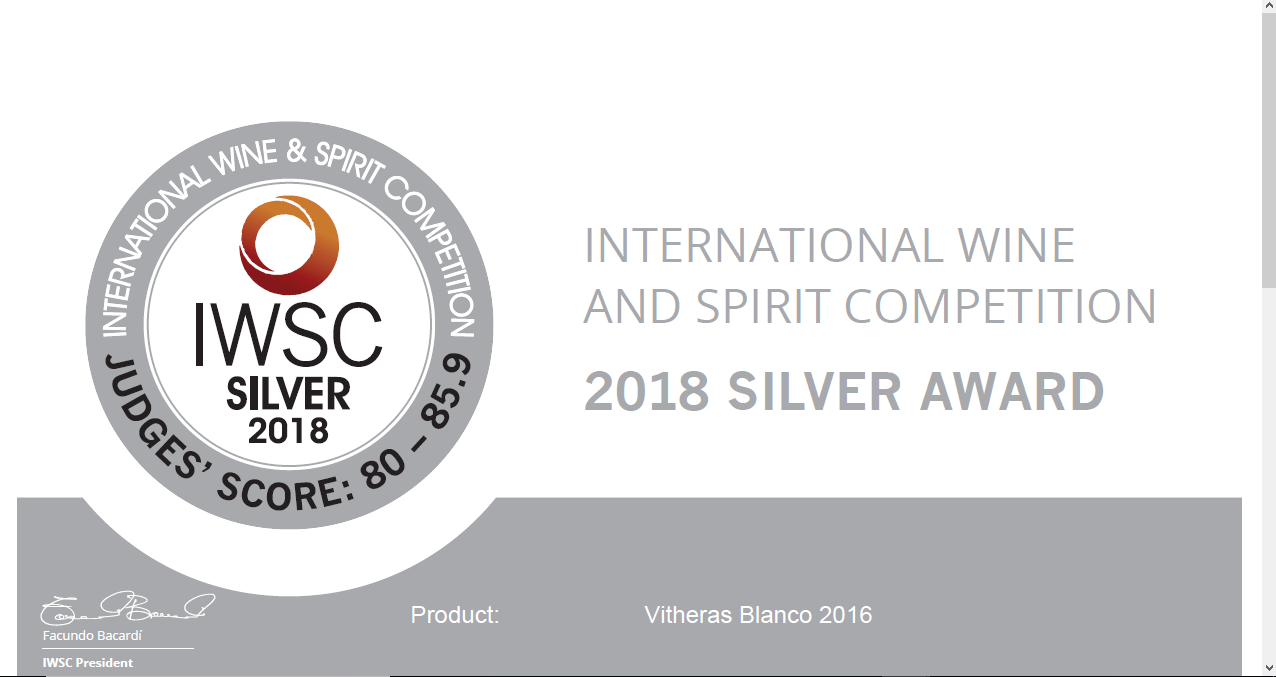 Mi enhorabuena a Carlos Ron, de Bodegas Vitheras por los numerosos premios concedidos a su vino Vitheras blanco 2016